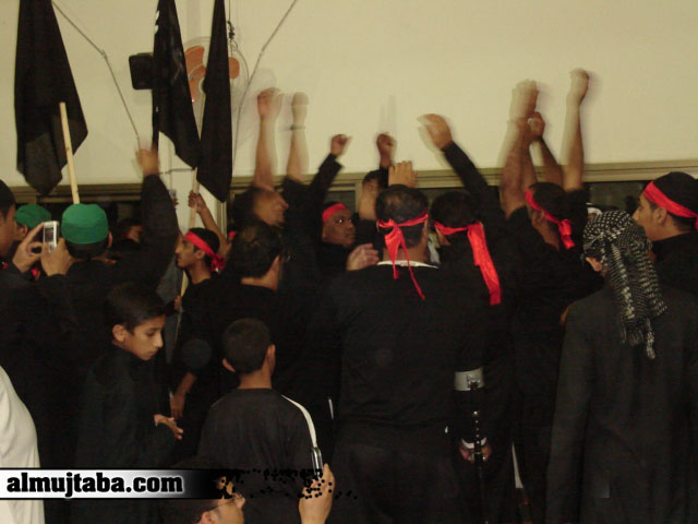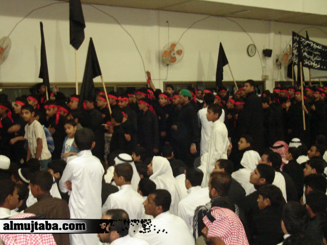 المسلمين في المبرز يقيمون مجالس العزاء الحسيني بمناسبة ذكرى أربعين يوم بعد استشهاد الامام الحسين (ع)، و أولاده، و أصحابه على رمضاء كربلاء