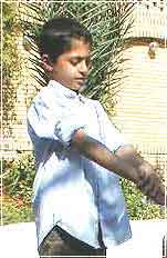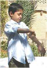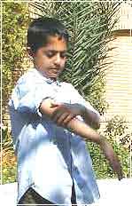 Lalu ambillah air untuk kedua kalinya dengan tangan kiri dan basuhlah tangan kanan dimulai dari siku-siku hingga ujung jari-jari. Membasuh tangan kanan disyaratkan dari atas ke bawah.