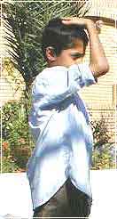 Kemudian usaplah kepala bagian atas ke arah depan dengan tangan kanan dan menggunakan sisa air yang tersisa di tangan. Anda tidak diperkenankan mengambil air baru untuk mengusap kepala.